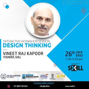 ACIC-RISE Association, Chandigarh Engineering College took immense pride in extending a very warm welcome to Prof. Vineet Raj Kapoor to join us as the distinguished speaker to deliver the Expert Session on Design Thinking on 26th July 2022, 1:30-4:30 pm, during Entrepreneurship workshop for Ideators was held from 25th July 2022-5th August 2022.