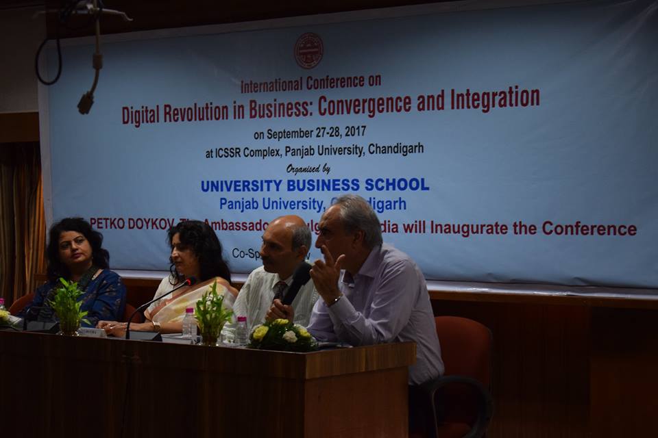 DR KULDEEP KAUL, MR VINEET RAJ KAPOOR, DR CHARU MALHOTRA, AND DR SEEMA BAWA AT THE PANEL DISCUSSION DURING THE INTERNATIONAL CONFERENCE ON DIGITAL REVOLUTION IN BUSINESS:CONVERGENCE AND INTEGRATION ORGANISED BY UNIVERSITY BUSINESS SCHOOL, PANJAB UNIVERSITY, CHANDIGARH.
