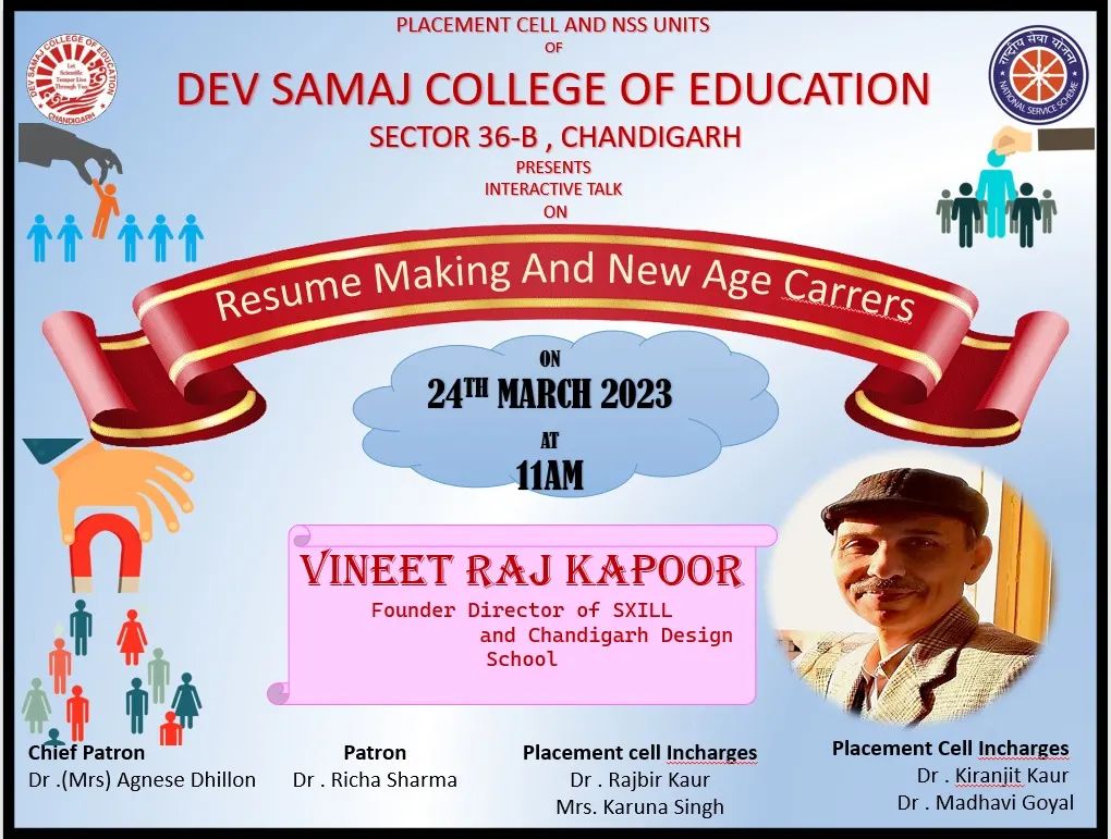 “Resume Making and New Age Careers” Workshop by Mr Vineet Raj Kapoor shares his experience over an exclusive interaction with Dev Samaj College, Sec 36, Chandigarh students