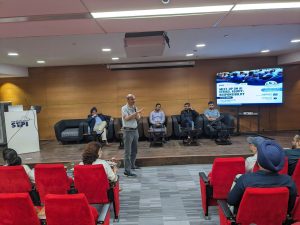 The Event was Hosted by Local Leader Vineet Raj Kapoor, and Conducted by Abhay Vohra. The main panelists were Harjeet Gulati (CEO Millipixels Interactive), Monica Bharadwaj (COO STPI Neuron), Ajay Srivastava (Director, STPI), Gopal Meena (VP, Chitkara), Samarth Gulati (Software Engineer, Postman).